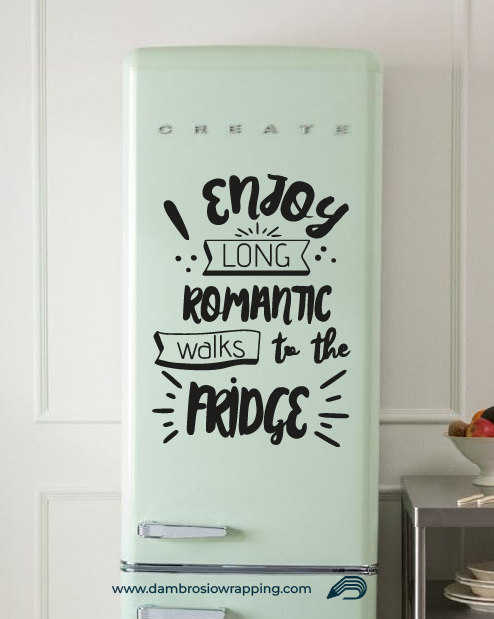 Adesivo per frigorifero - "Mi piacciono le lunghe passeggiate romantiche verso il frigo"